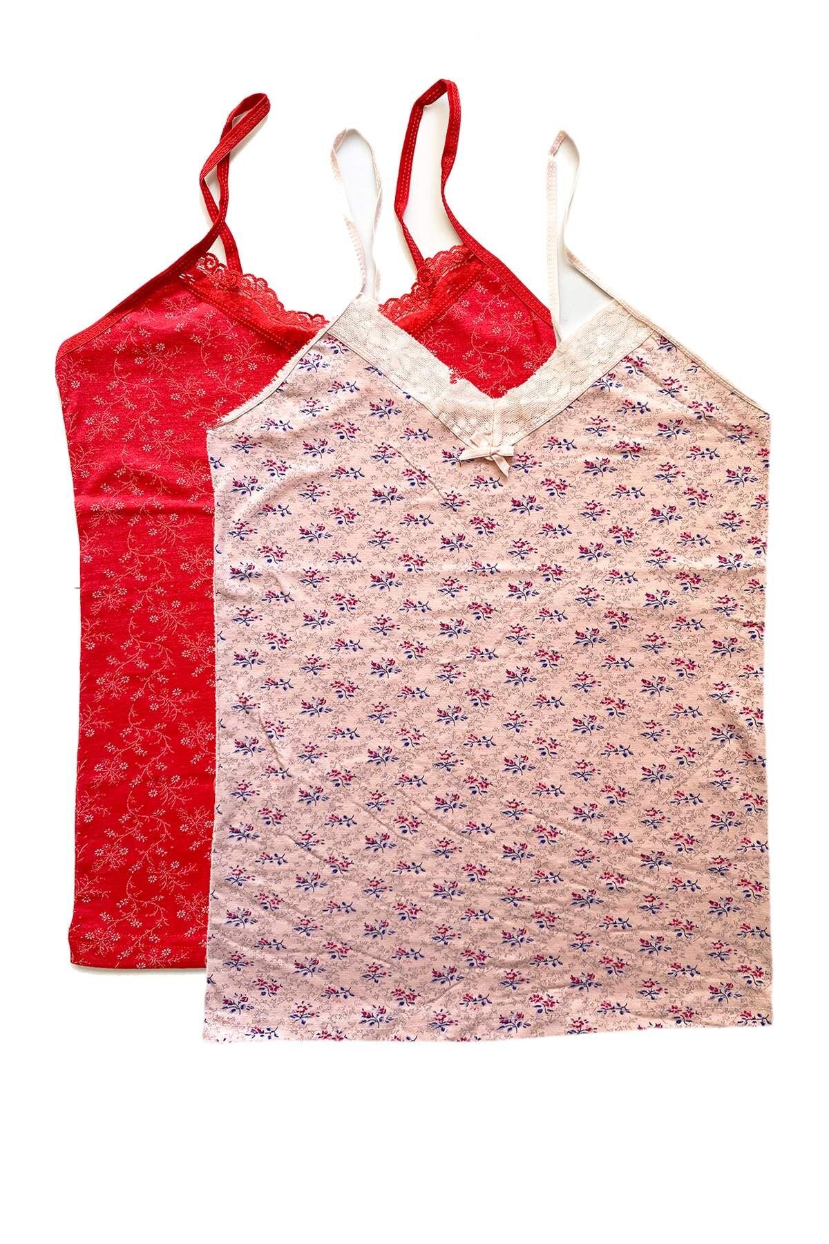 2 Adet Kadın Askılı Desenli Atlet Dantelli Empirme Pamuklu Penye D9-10 M