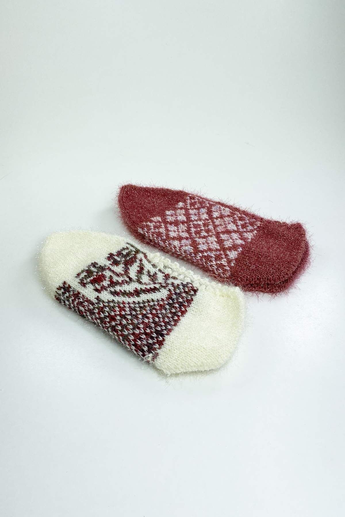 2 Çift El Örgüsü Kışlık Şık Kadın Yün Patik Set 2 36-40