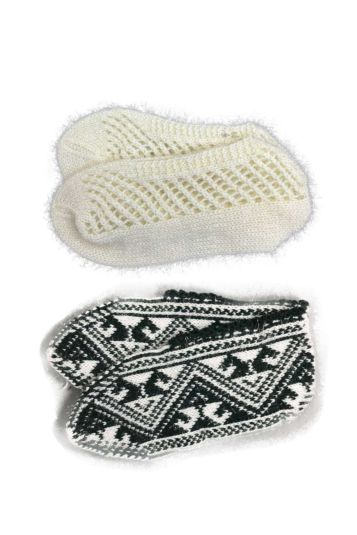 2 Çift Kışlık Şık Kadın Yün Patik Krem Siyah 36-40