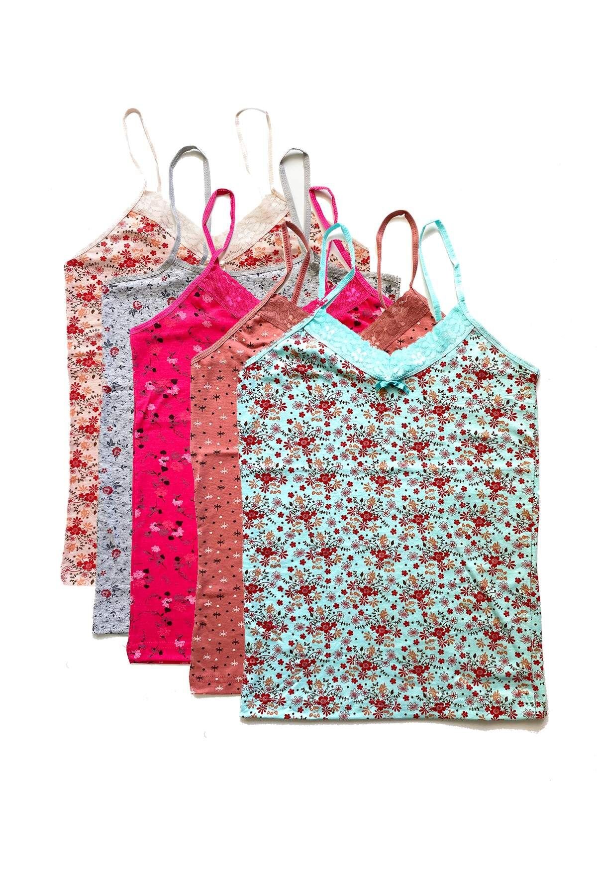 5 Adet Kadın Askılı Desenli Atlet Dantelli Empirme Pamuklu Penye D1-5 XXL