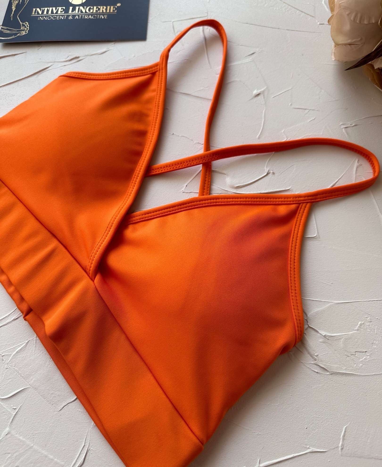 Aurafit Kaplı Arkası Çapraz Derin Dekolte İp Askılı Spor Sütyeni/Büstiyer-9026 Turuncu - S/M