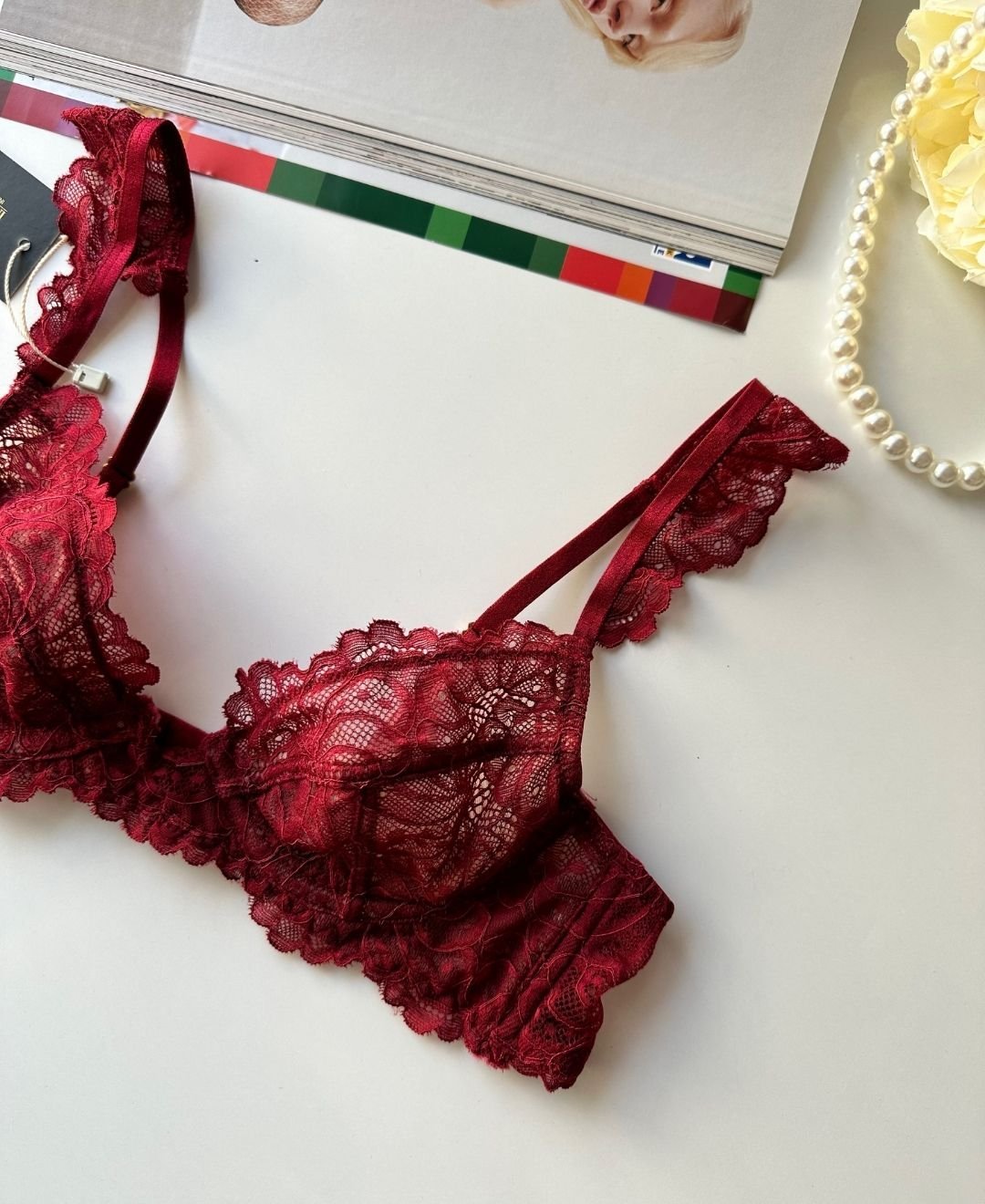 Ava Intive Bordo Dantelli Balenli Kol Detaylı Seksi Sütyen Bordo - XL