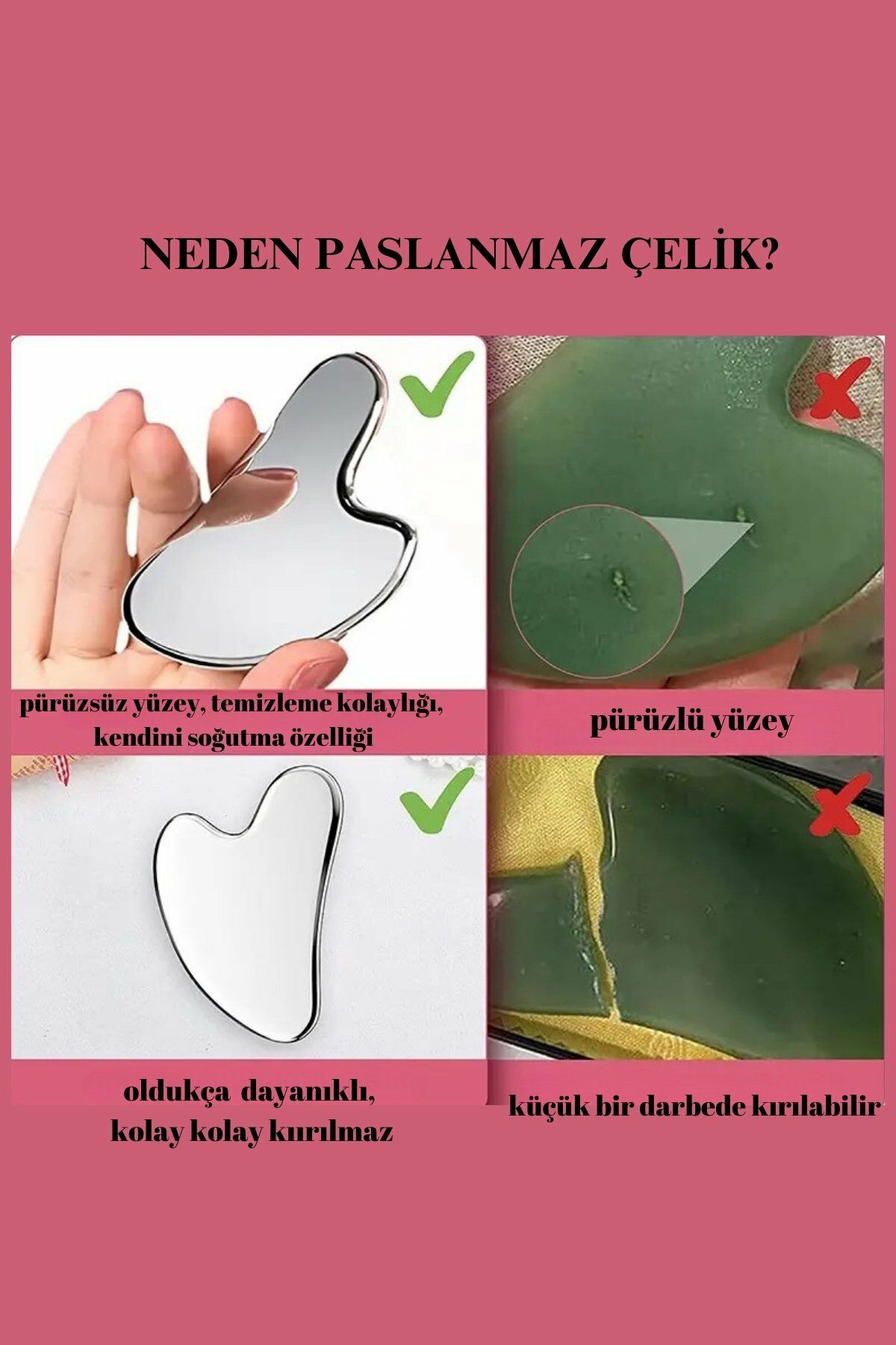 Çelik Stainless Steel Kırılmaz Dayanıklı Gua Sha Yüz Masaj Aparatı