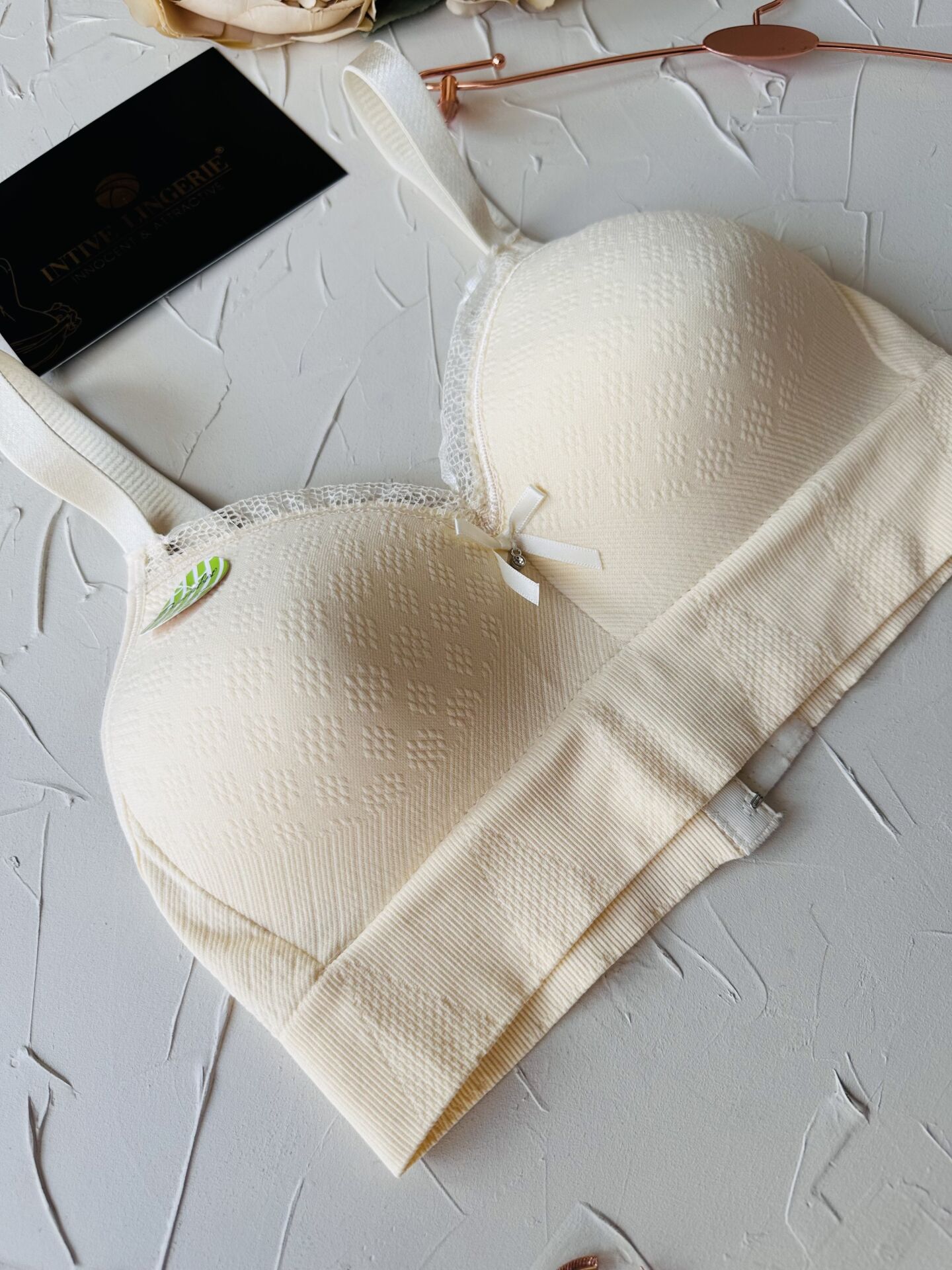 Celine C Cup Bambu Hisli Ultra Rahat Polamid Kumaştan Dokulu Dantel Detaylı Balensiz Desteksiz Sütyen Ekru - 85C