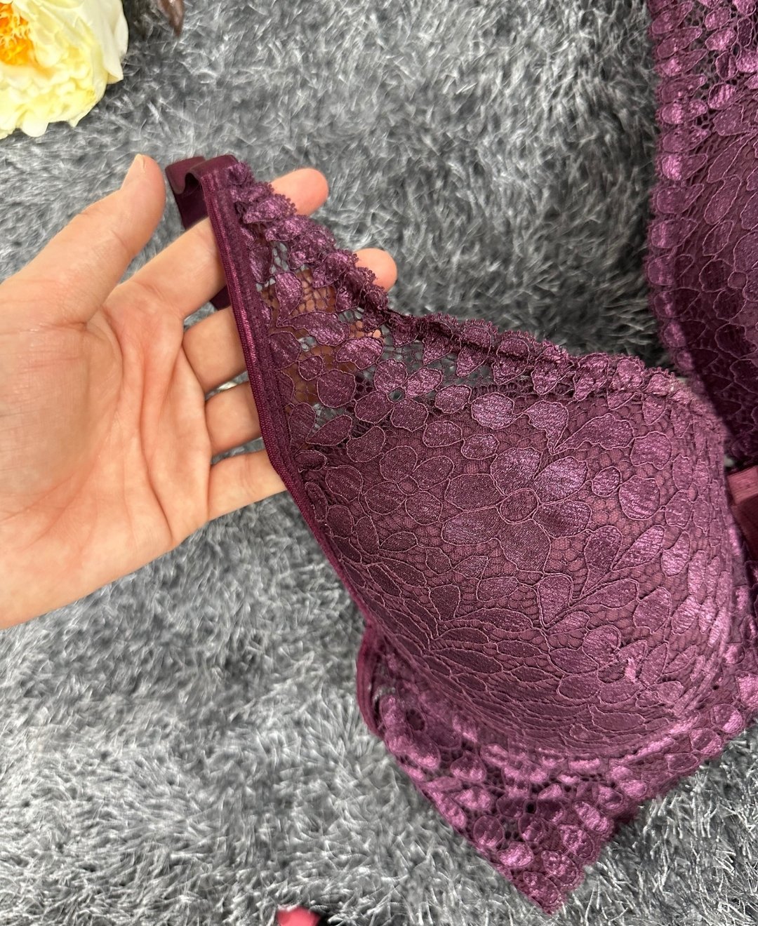 Dantelli Balenli Yumuşak Padli C Cup Hafif Günlük Sütyen -6010 Mürdüm - 90C