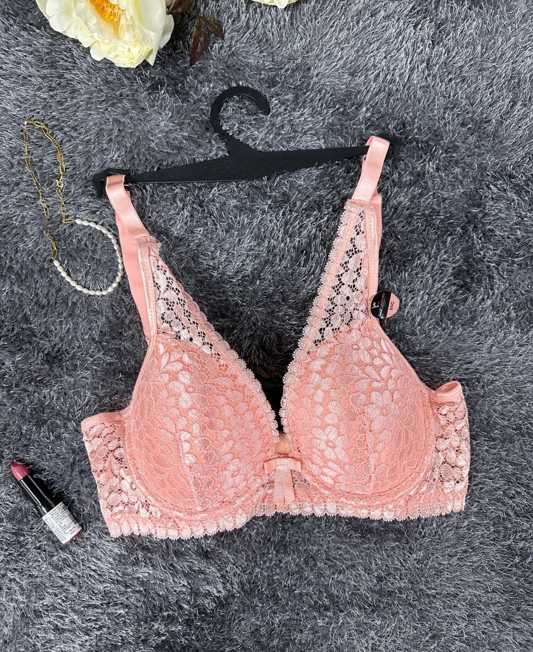 Dantelli Balenli Yumuşak Padli C Cup Hafif Günlük Sütyen -6010 Somon - 95C