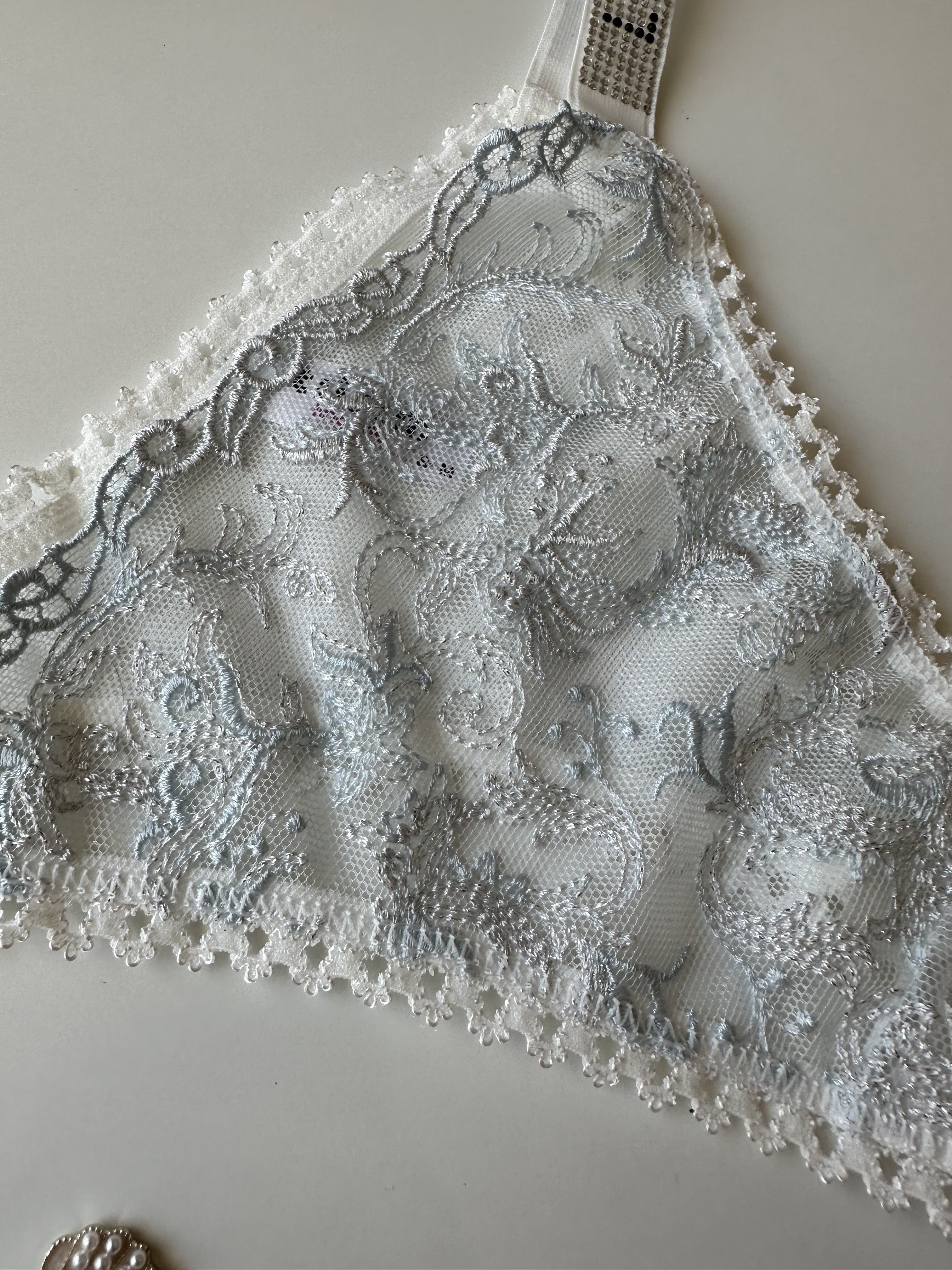Desenli Push-up Askıları Taşlı Sütyen Takım Mavi - 90B