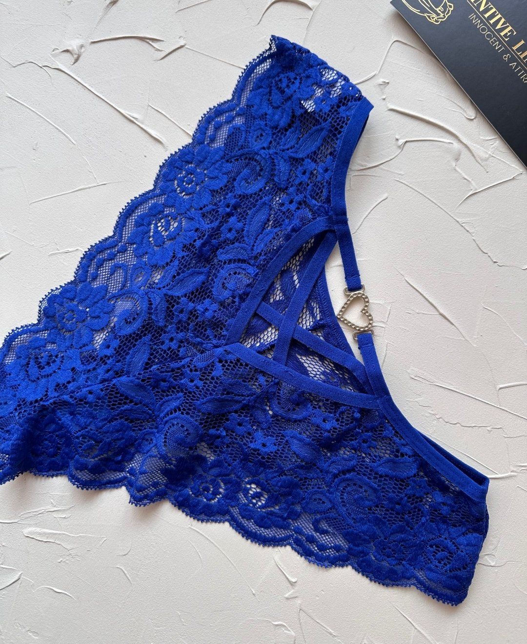 Intive Arkası Kalp Aksesuarlı Yumuşak Dantelli Brazilian Tanga Lacivert - Tek Ebat