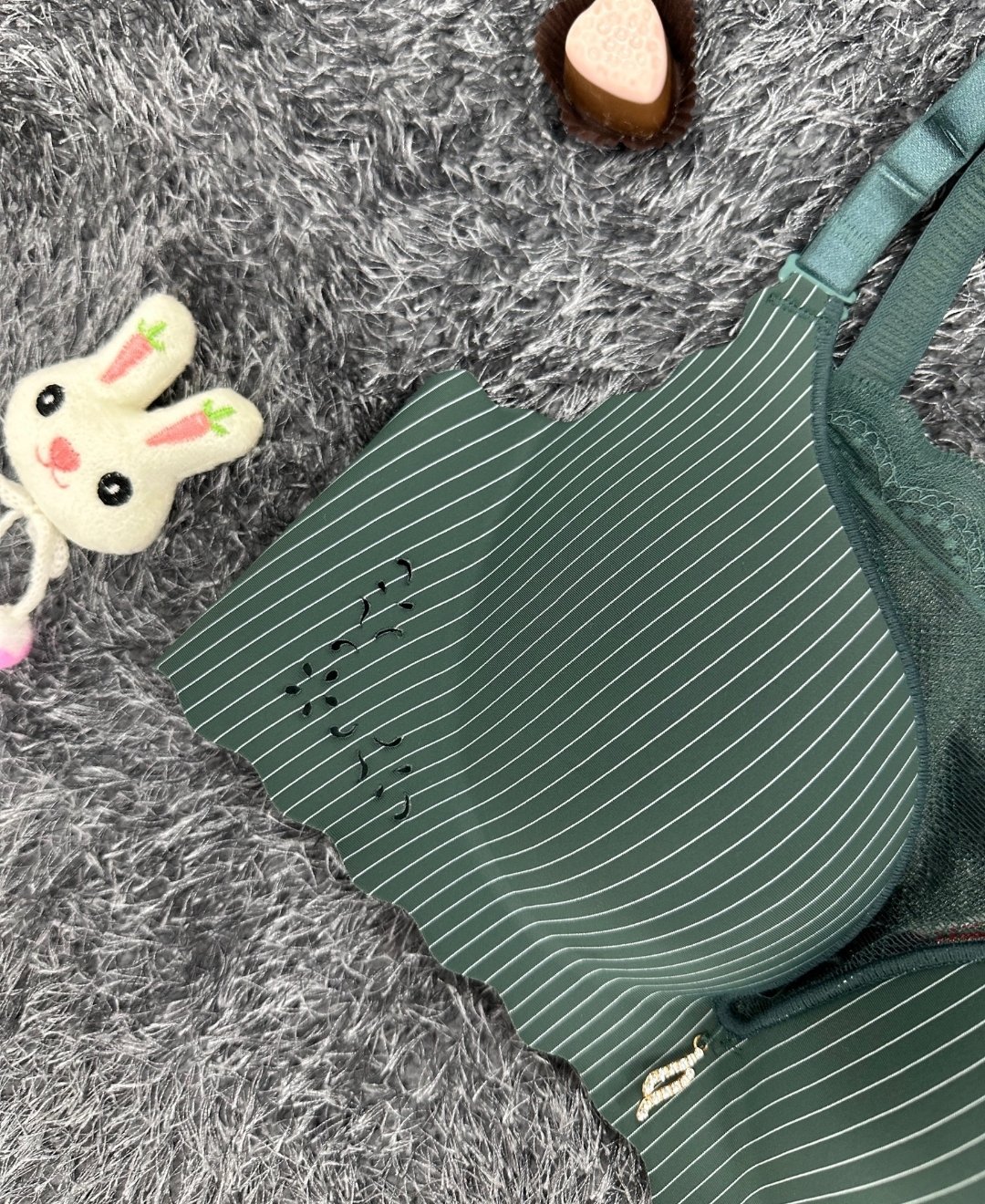 İthal Çizgili Önü Dantelli Lazer Kesim Soft Push Up Balensiz Sütyen - 1202 Yeşil - 75B