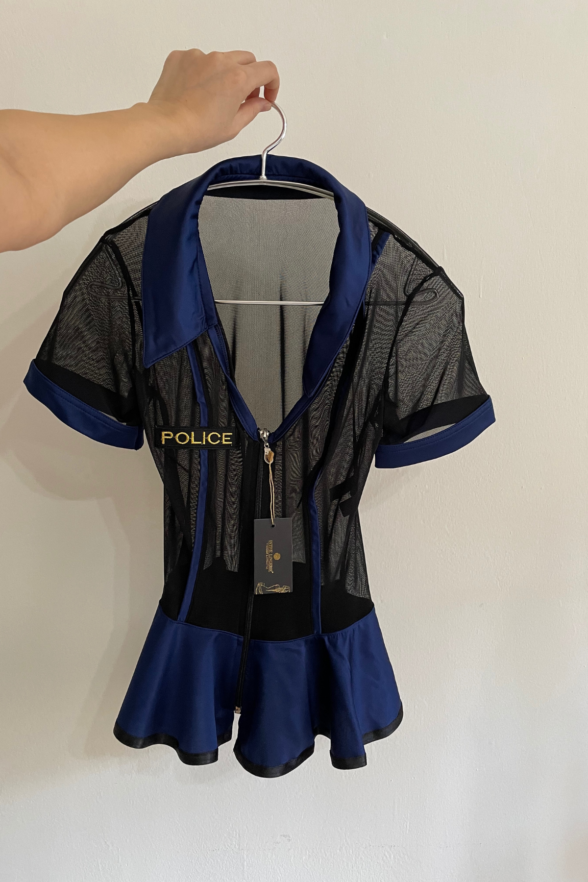 Kadın Lacivert Siyah Transparan Seksi Fantezi Polis Kostüm