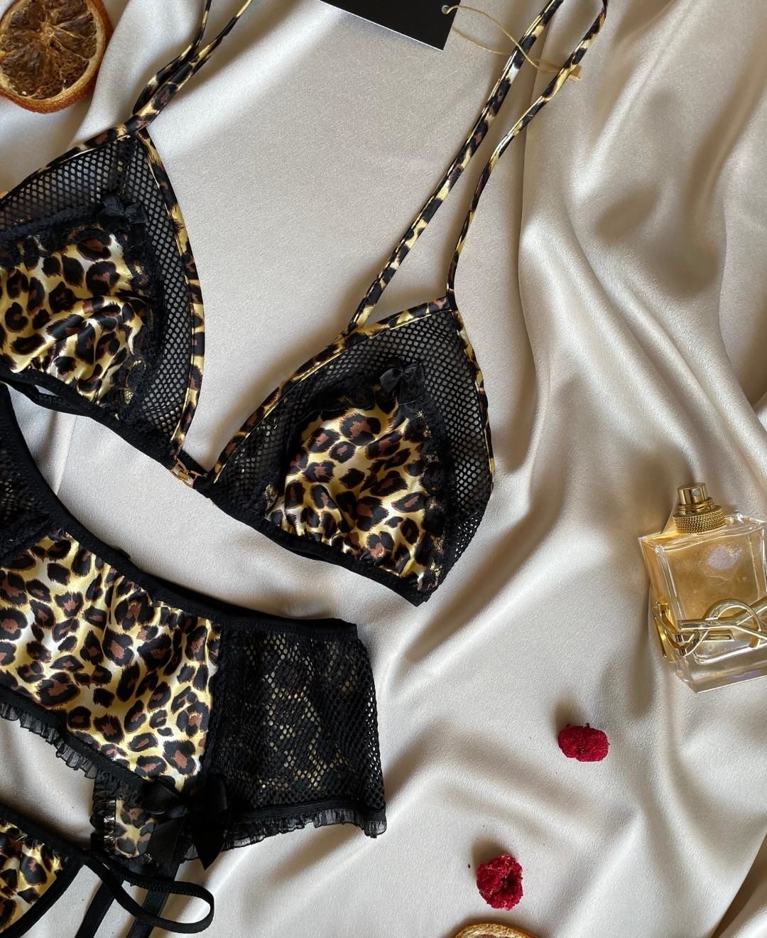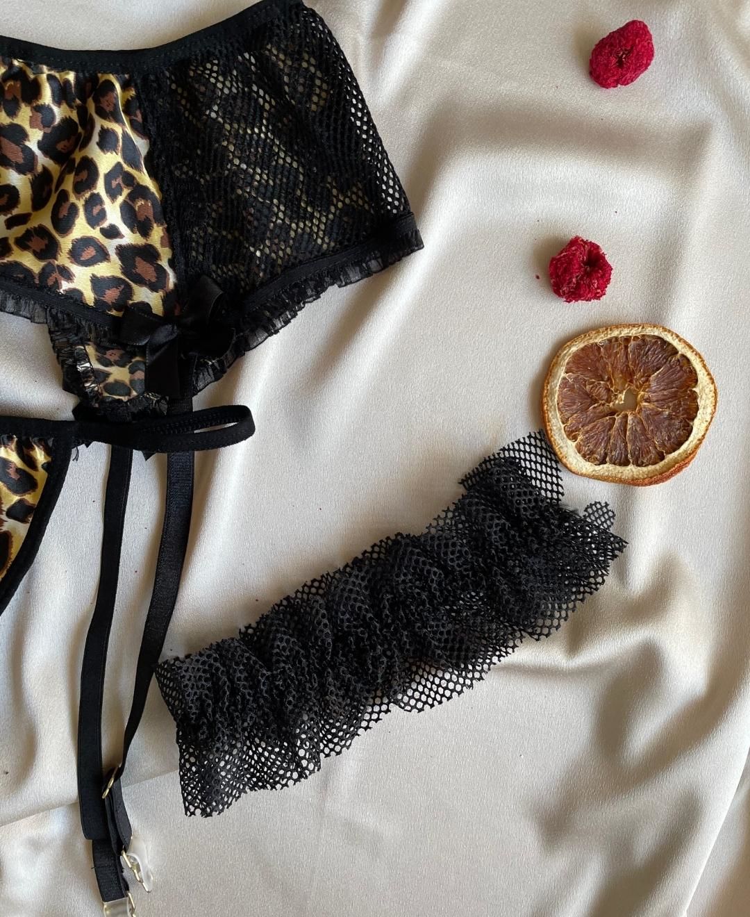 Kadın Leopar Desenli Bacak Aksesuarlı Jartiyer Takım (Sütyen-jartiyer-tanga-bacak aksesuarı)