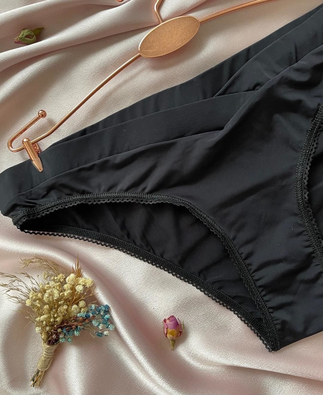 Kadın Rahat Kumaş Önü V Detaylı Günlük Kullanım Mikro Saten Slip- Natalia Siyah - L