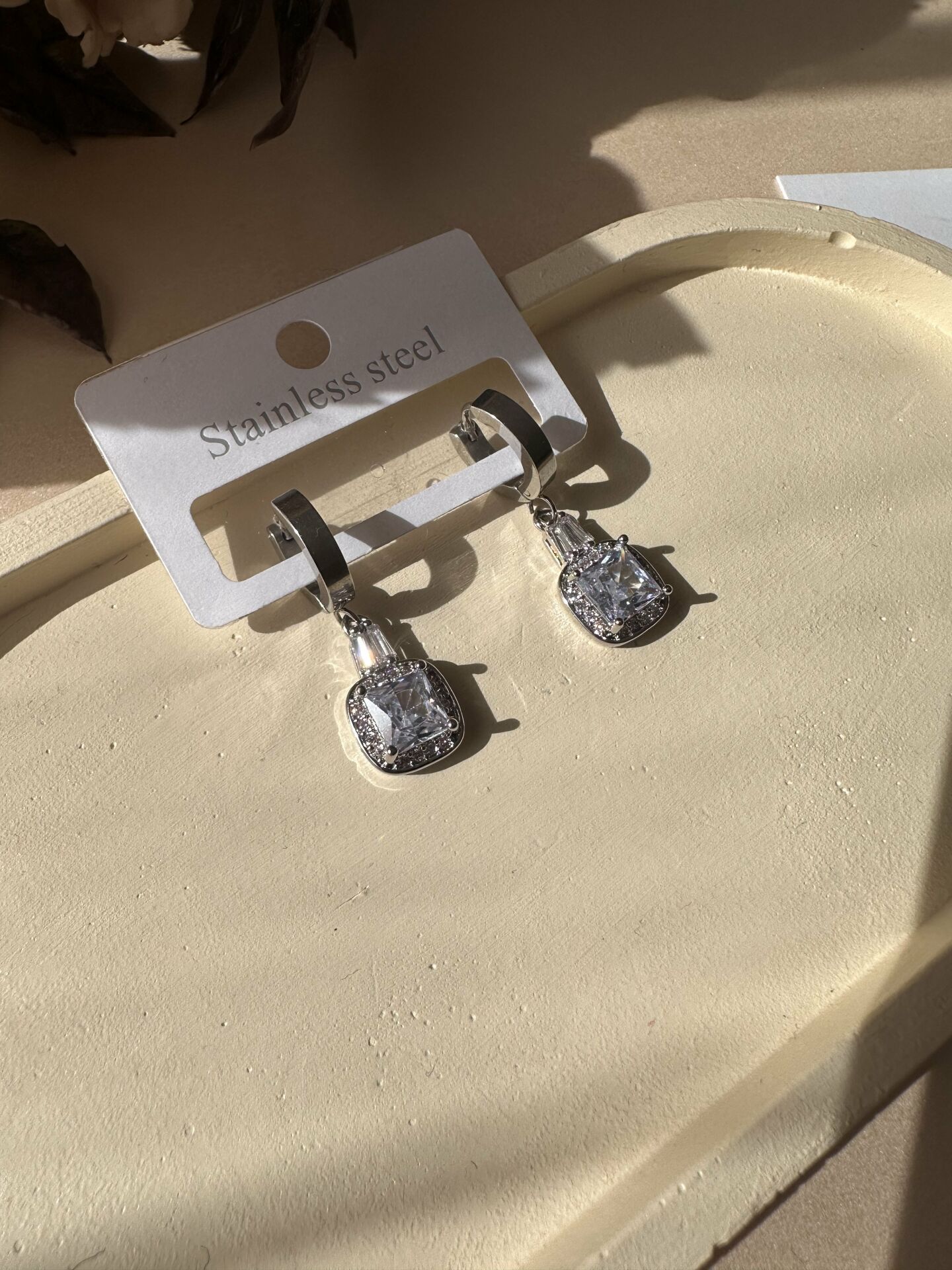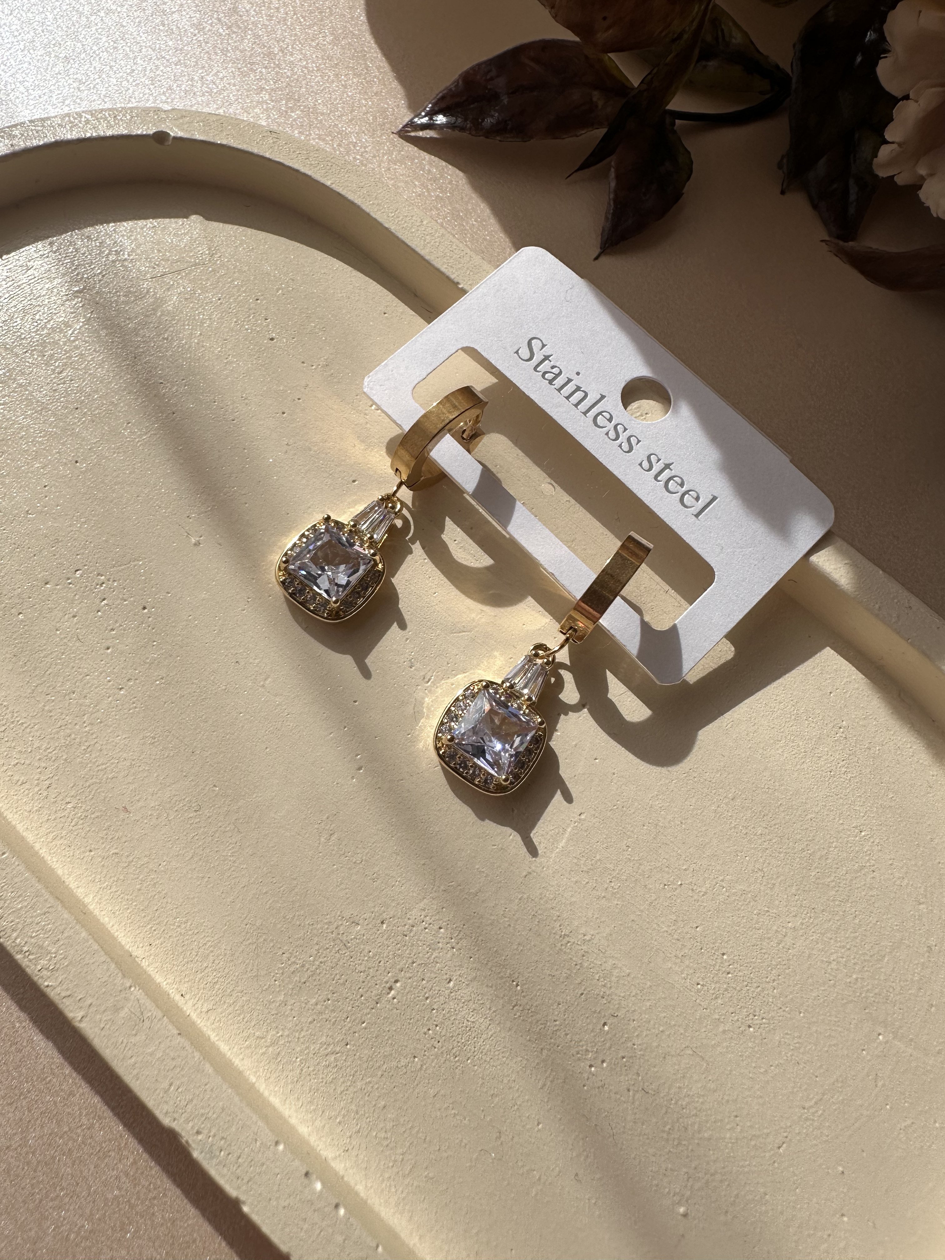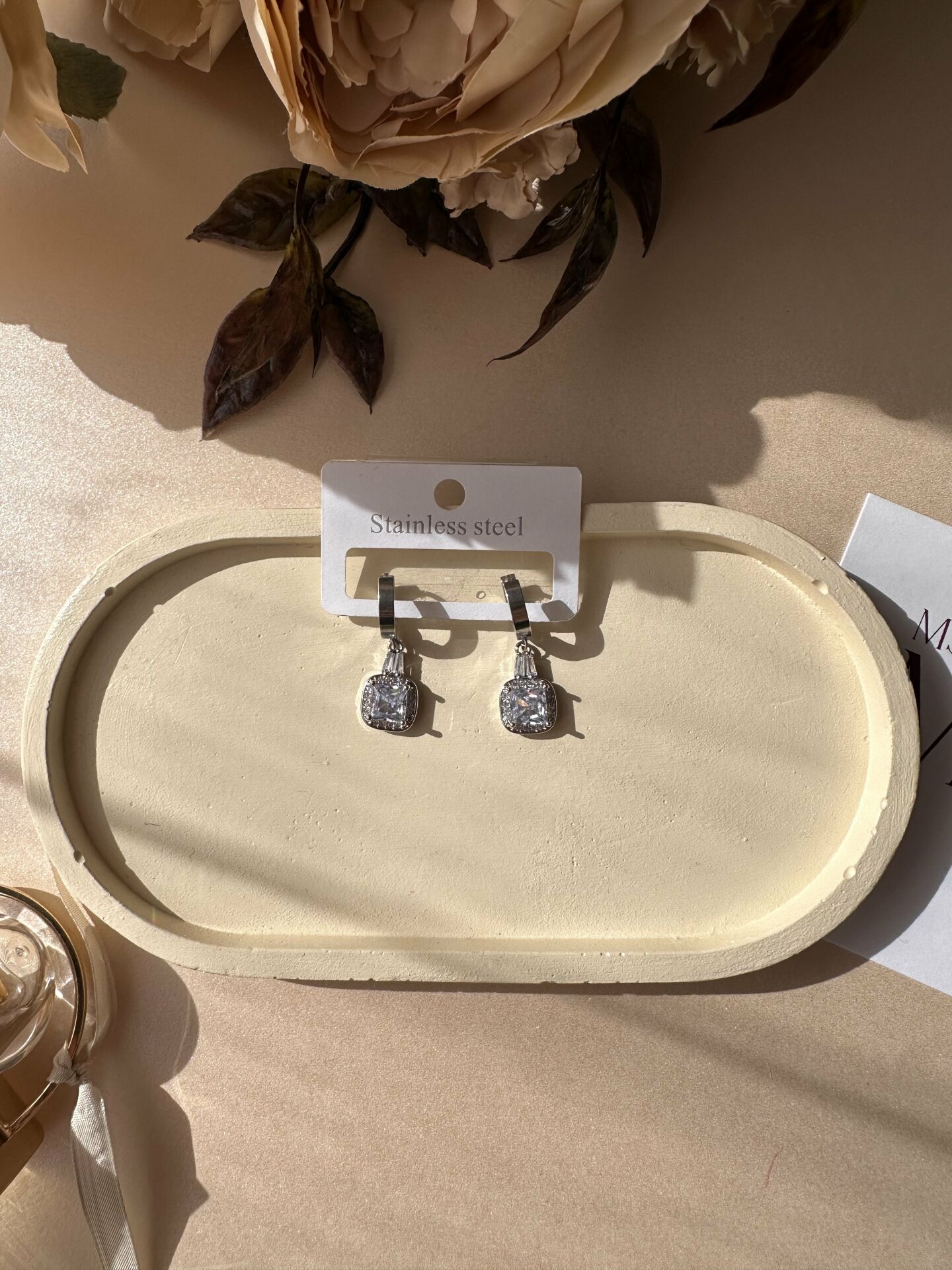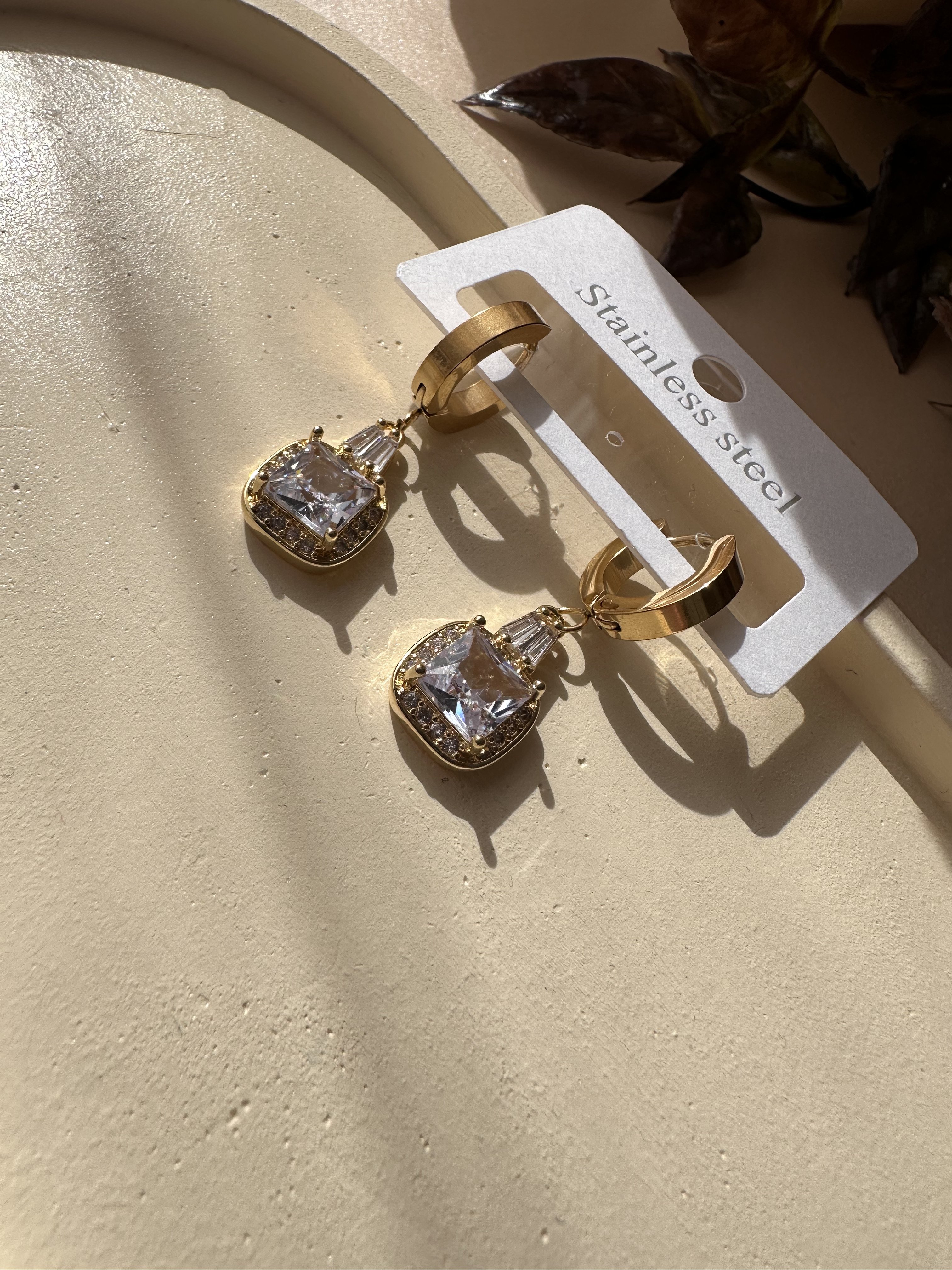 Kadın Swarovski Baget Taşlı Çelik Küpe (Gold ve Gümüş) Gümüş