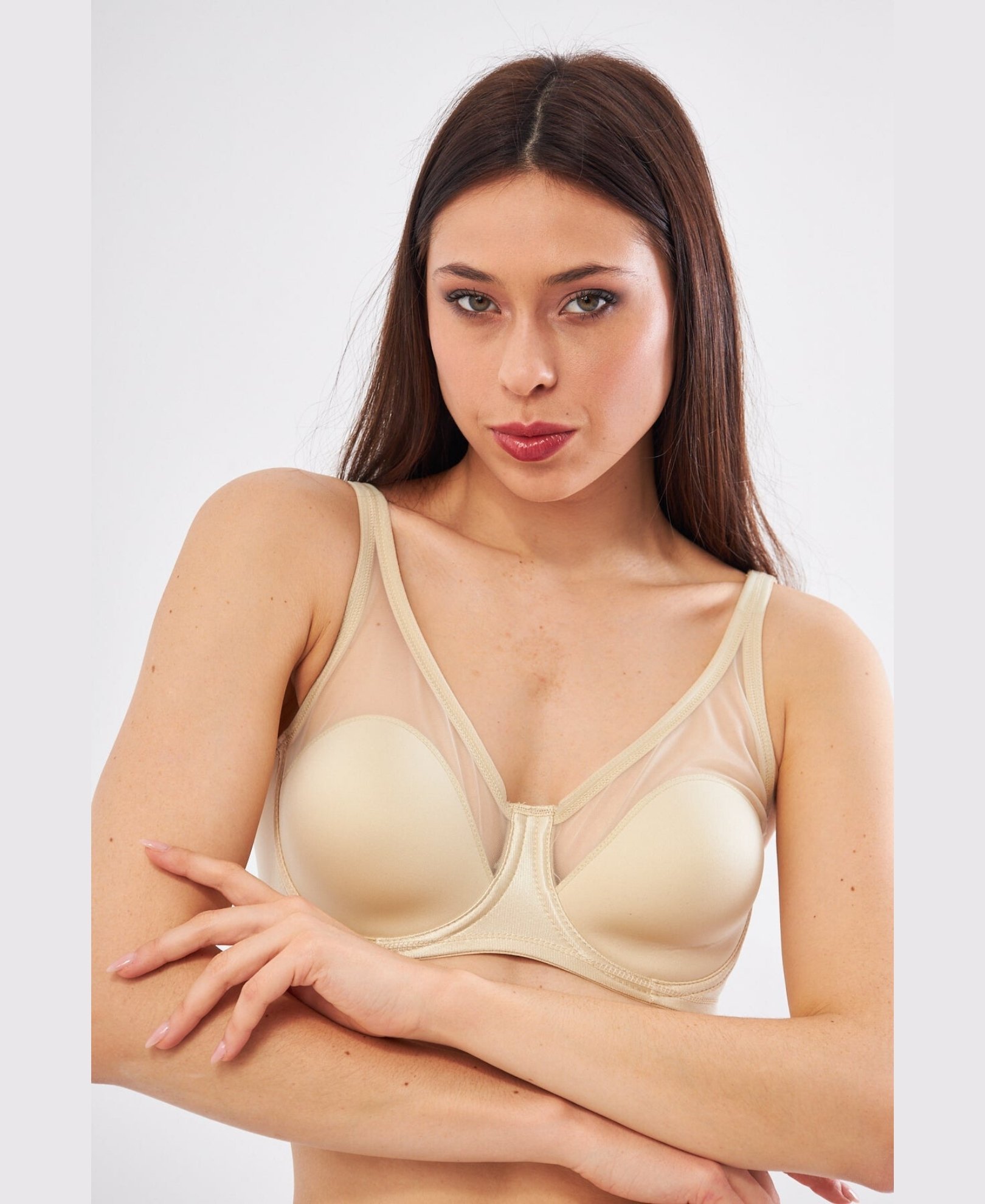 Le Jardin Linda Tül Detaylı Toparlayıcı İnce Soft Cup Sütyen (B-C CUP) -9200 Ten Rengi - 85B