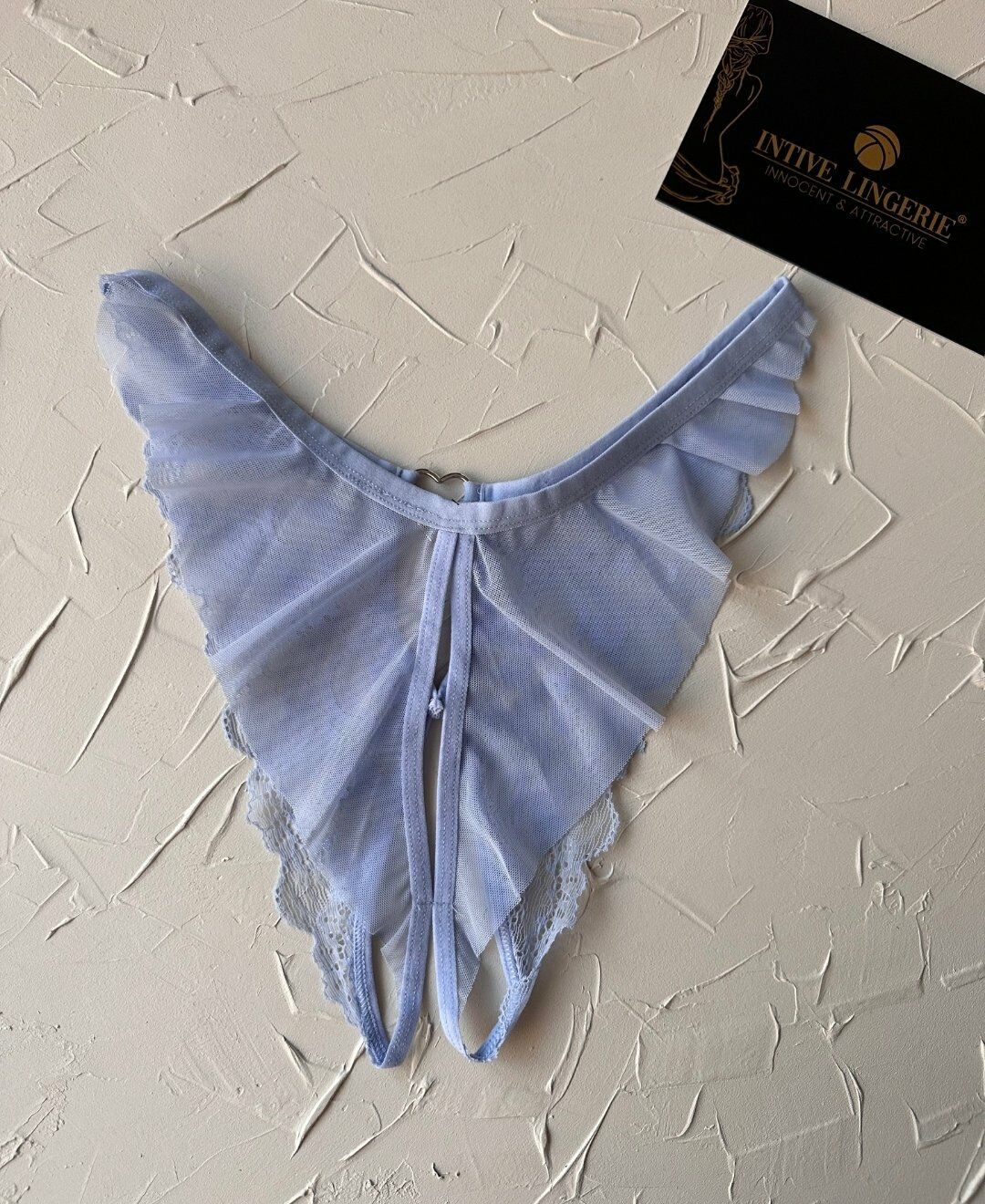 Lisa Dantelli Özel Bölgesi Açık Arkası Tül ve Açık Fantezi String (Limited) Mavi - Tek Ebat