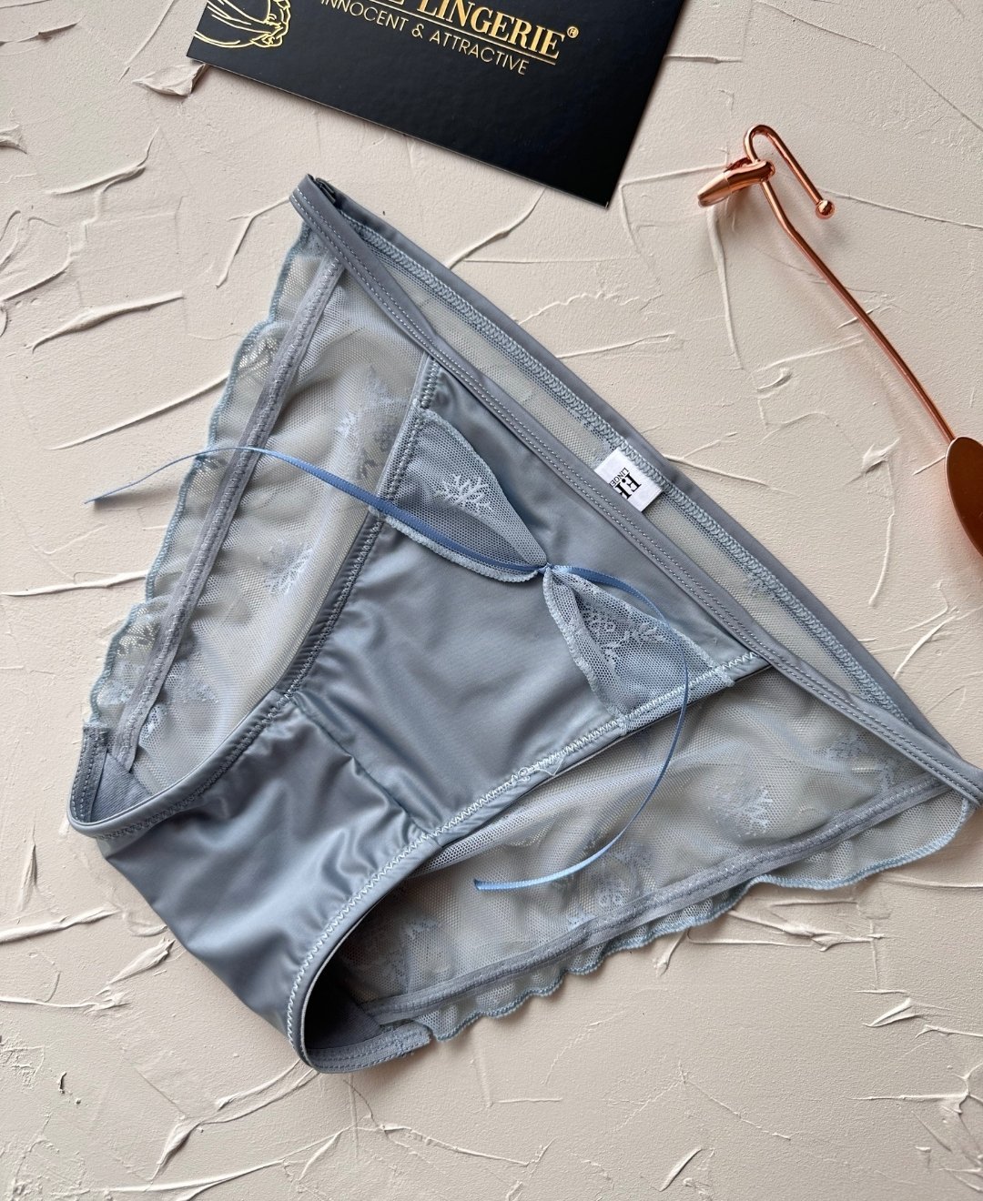 Lucia Japon Style Arkası Tül Saten Kurdele Detaylı Cheeky Külot/Slip-2858 Mavi - M