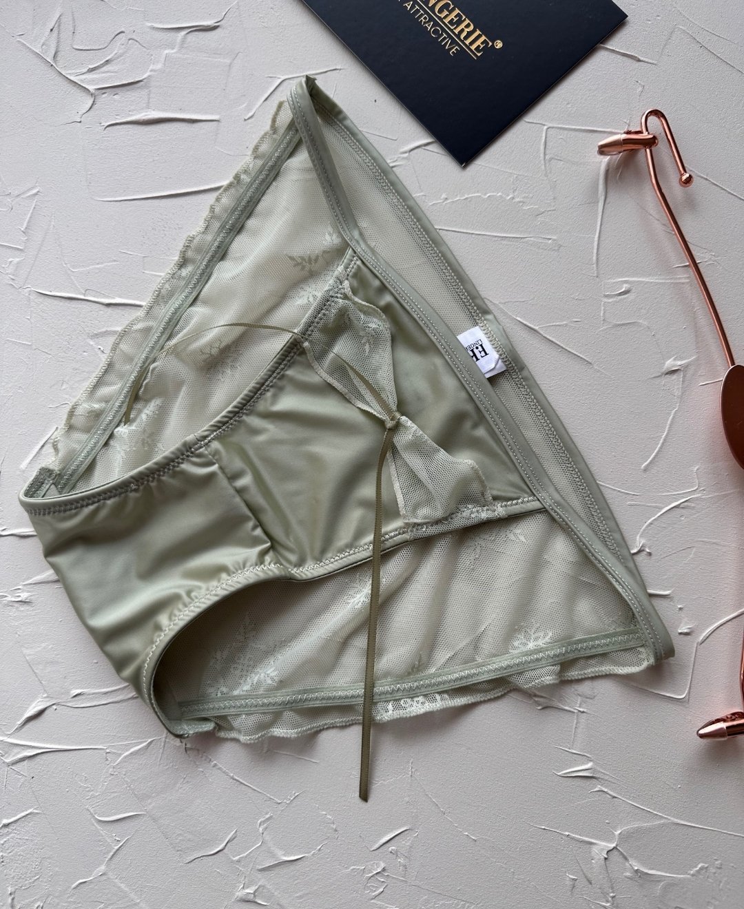 Lucia Japon Style Arkası Tül Saten Kurdele Detaylı Cheeky Külot/Slip-2858 Yeşil - S