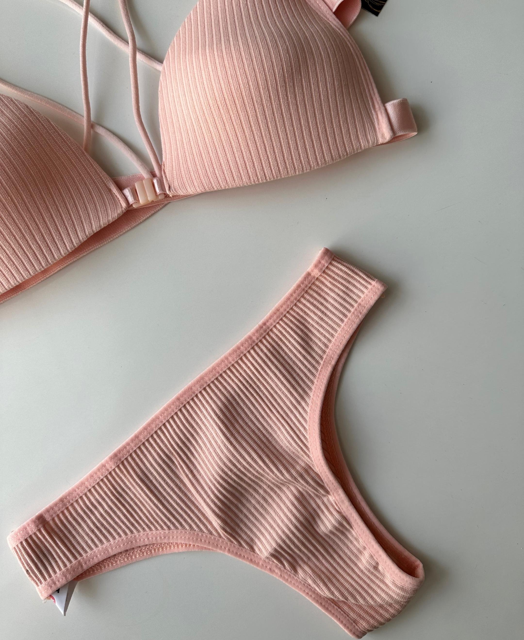 Mae Pamuklu Arkası Çapraz İpli Önden Kopçalı Sütyen Takım Pembe - S-M