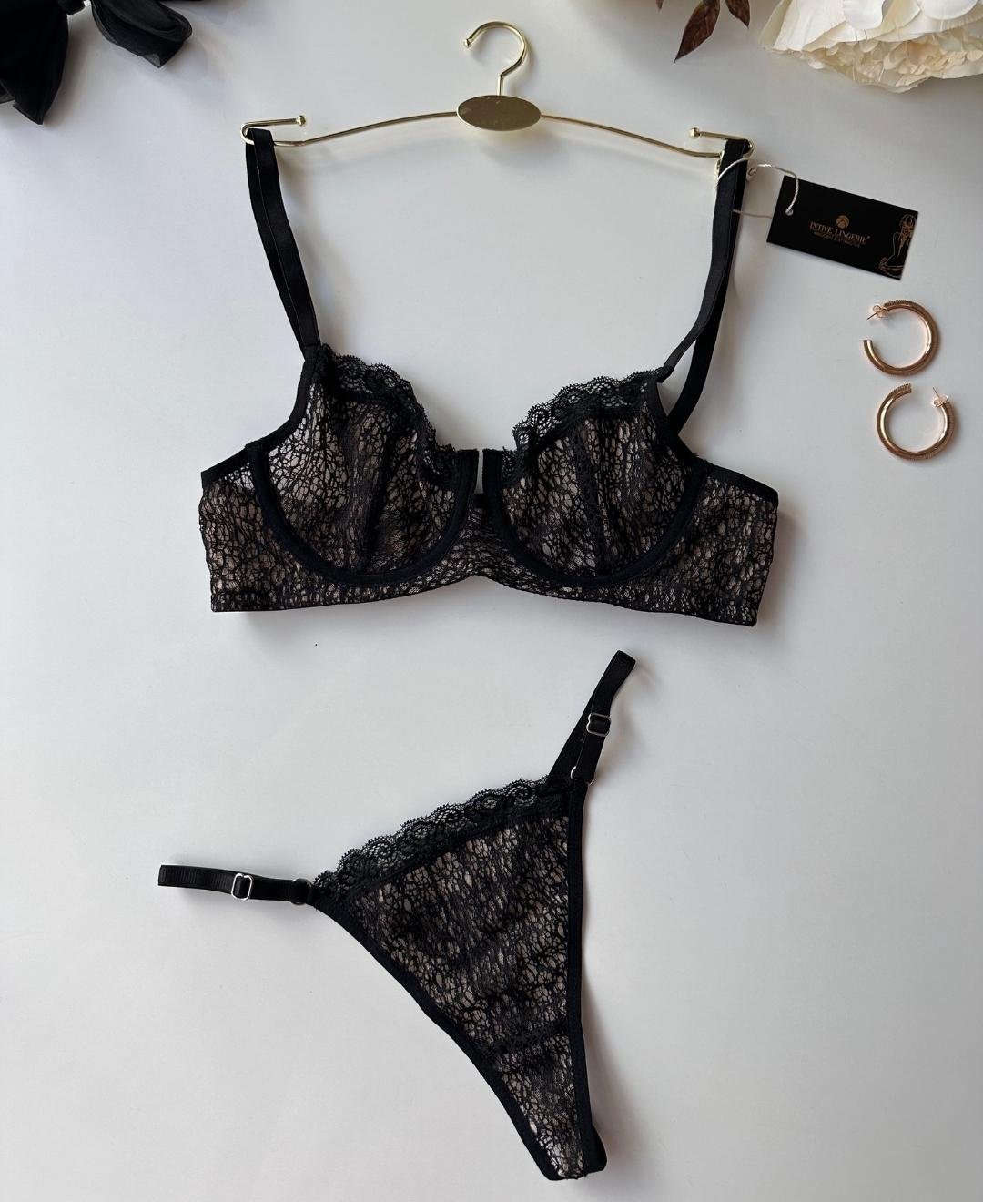 Miley Kadın İçi Tül Detaylı Dantel Detaylı Kadın B Cup Sütyen Tanga Takım Siyah - 80B