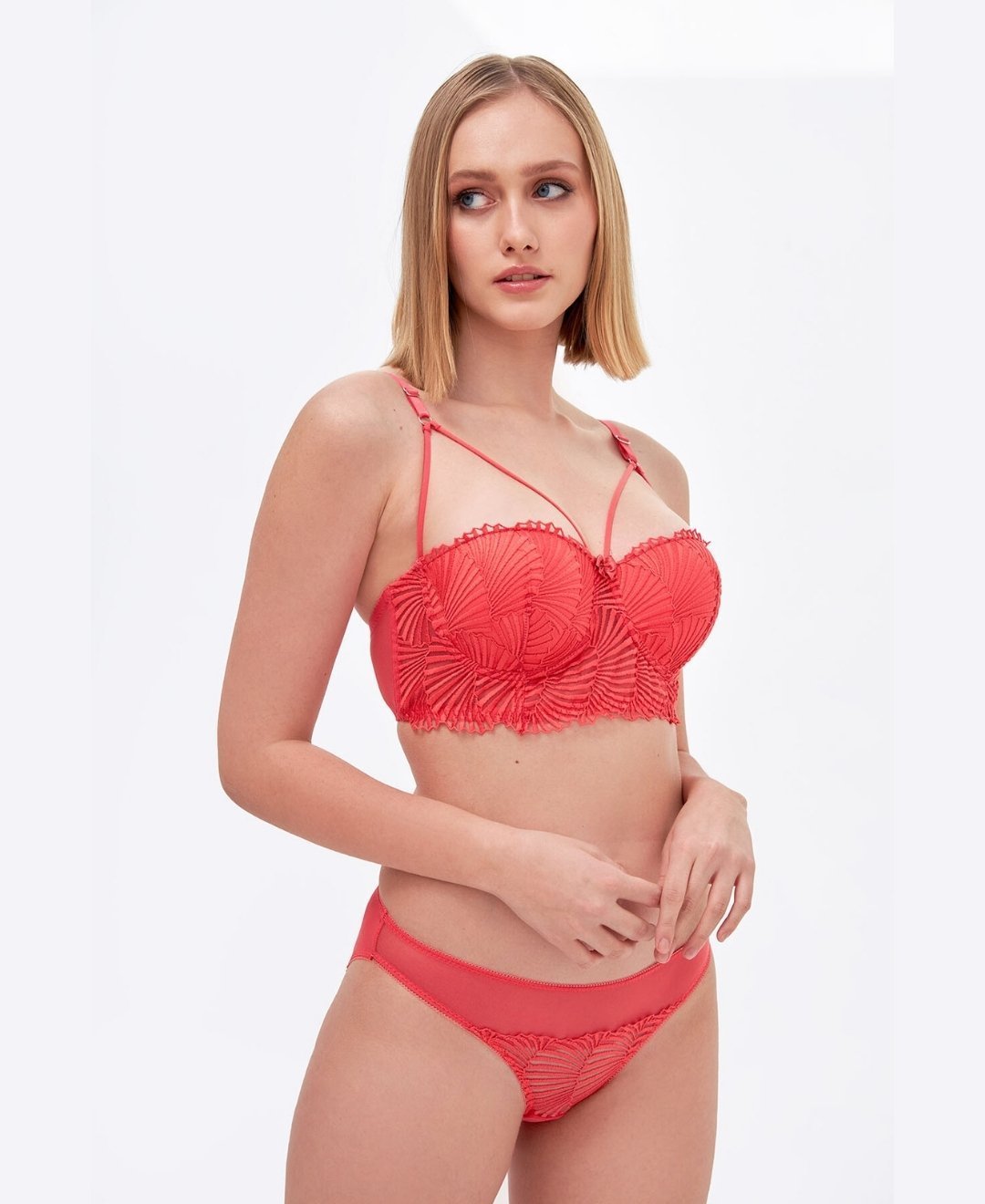 NBB Balenli Destekli Kaplı Dantel Sütyen Transparan Külot Takım-4742 Somon - 85B