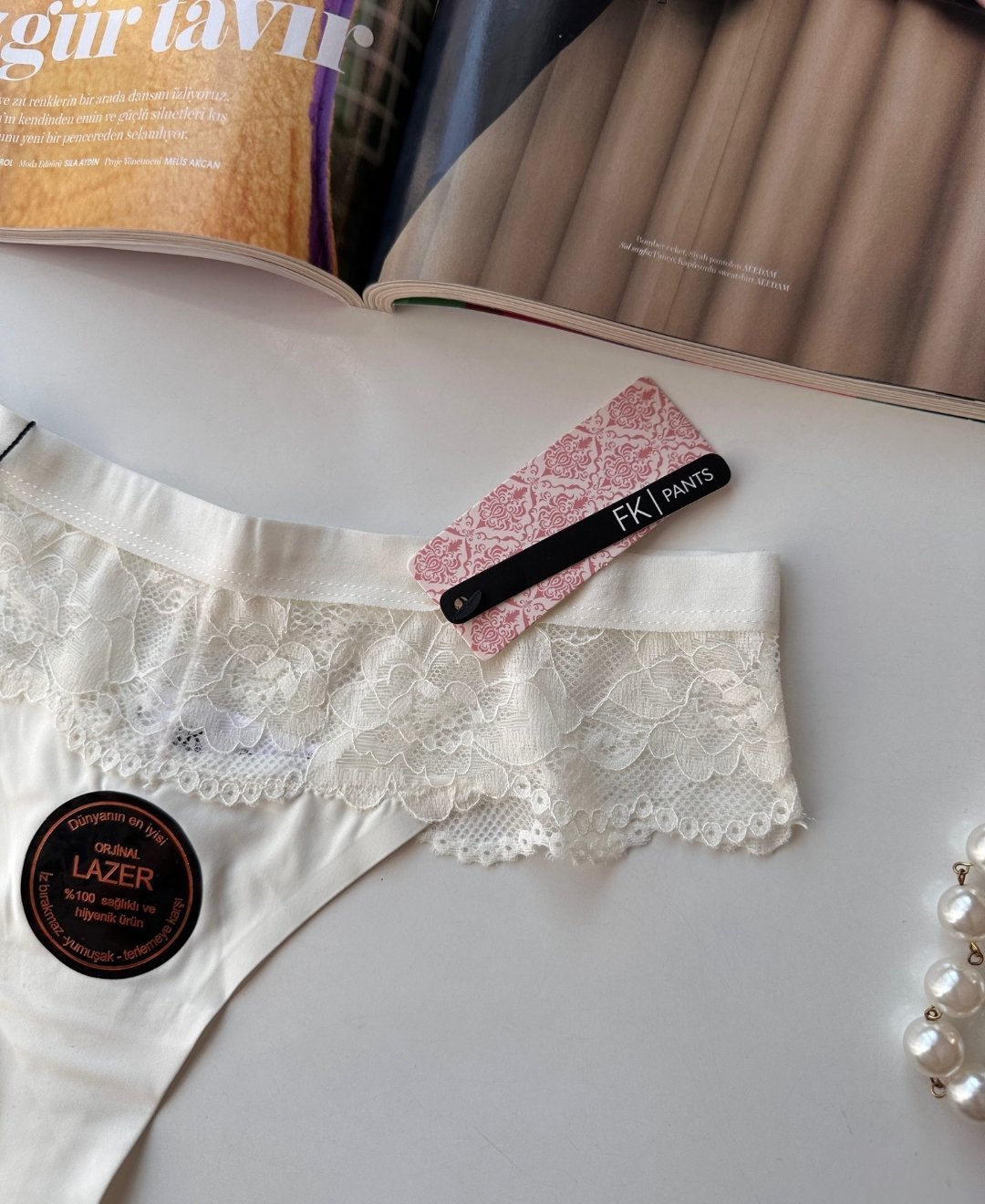 Orijinal Lazer Kesim Üstün Kalite Spandex Invisible Dikişsiz Dantelli Tanga - 2801 Beyaz - M