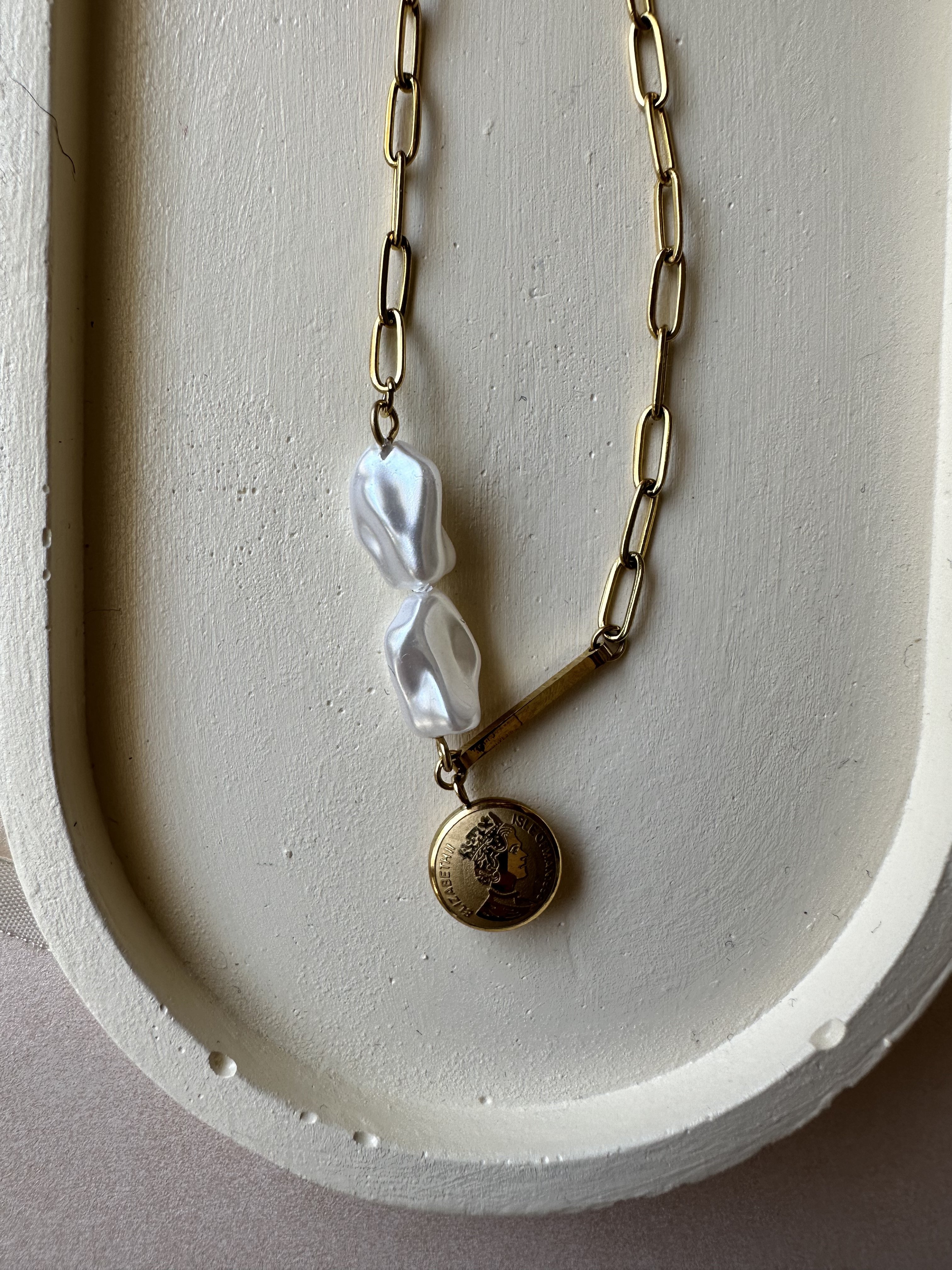 Queen Elizabeth Madalyonlu Barok İncili Çelik Zincir Bileklik