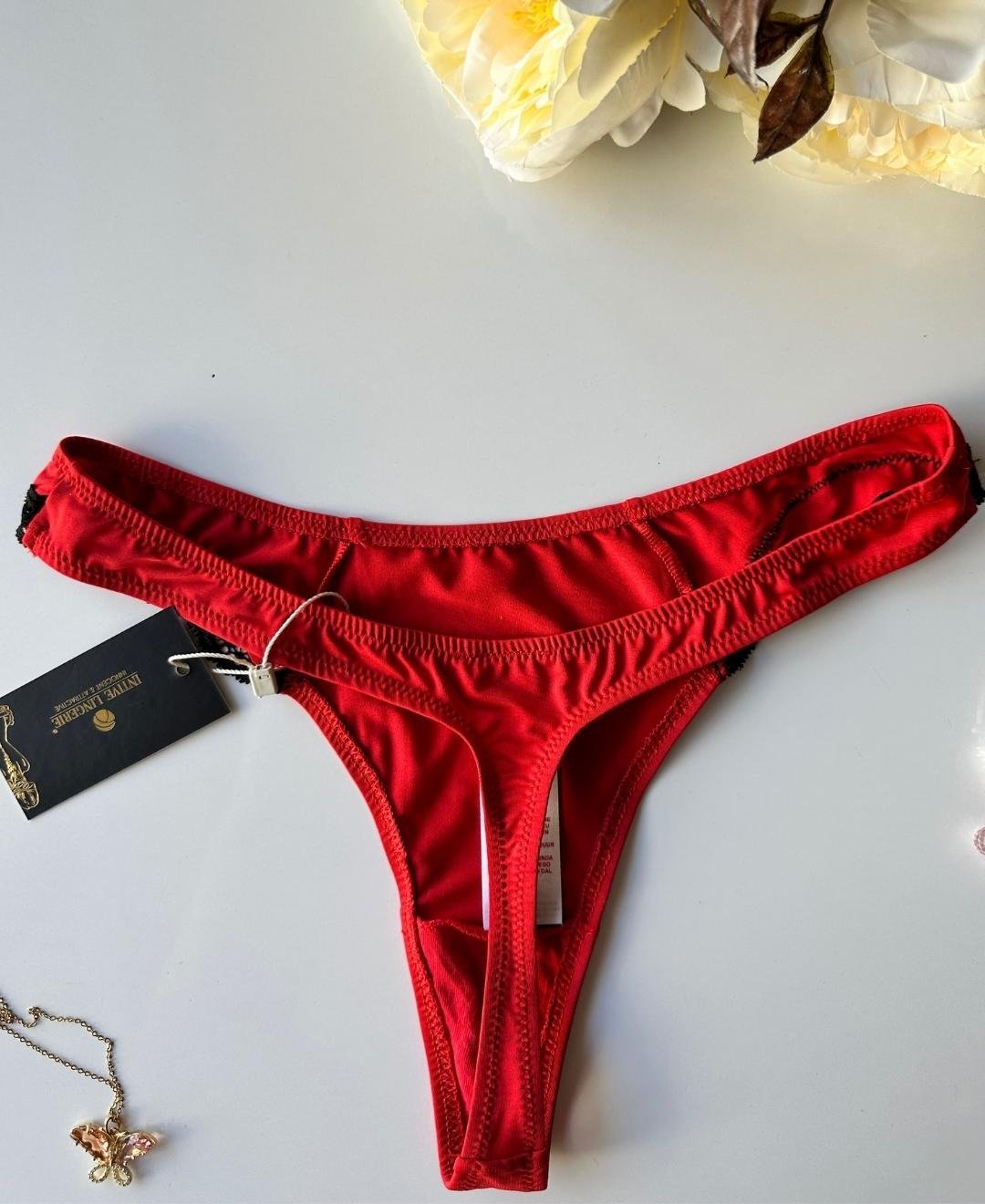 Siyah Dantel Detaylı Üstün Kalite Kırmızı Tanga Kırmızı - 2XL