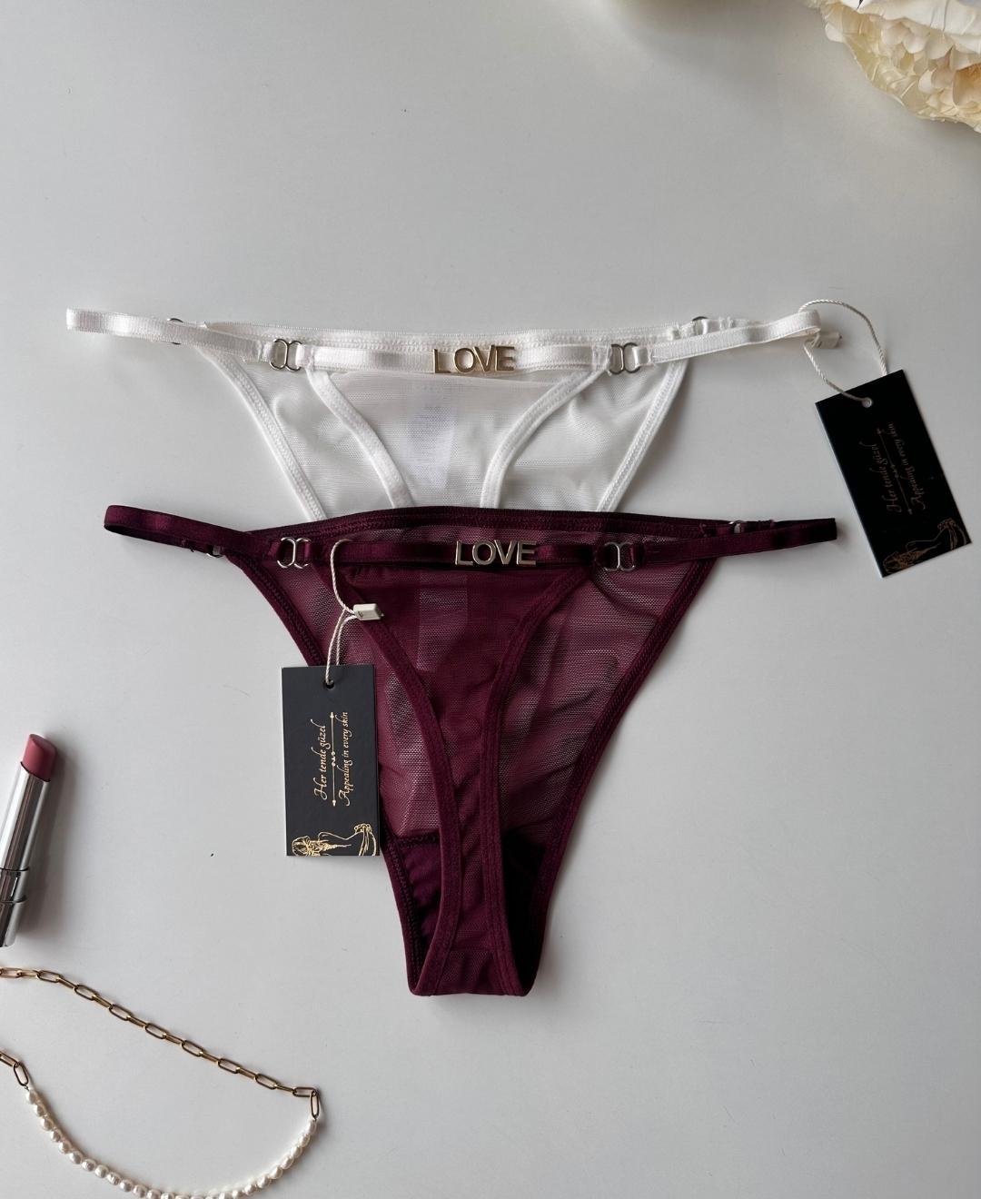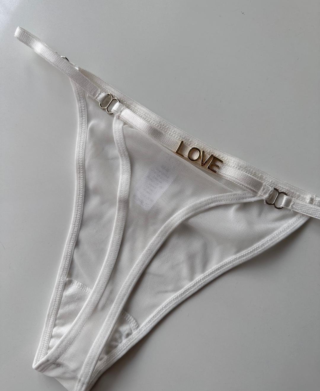 Valerie Arkası 'Love' Yazılı Ağı Pamuklu Tül Tanga - Limited Beyaz - S/M