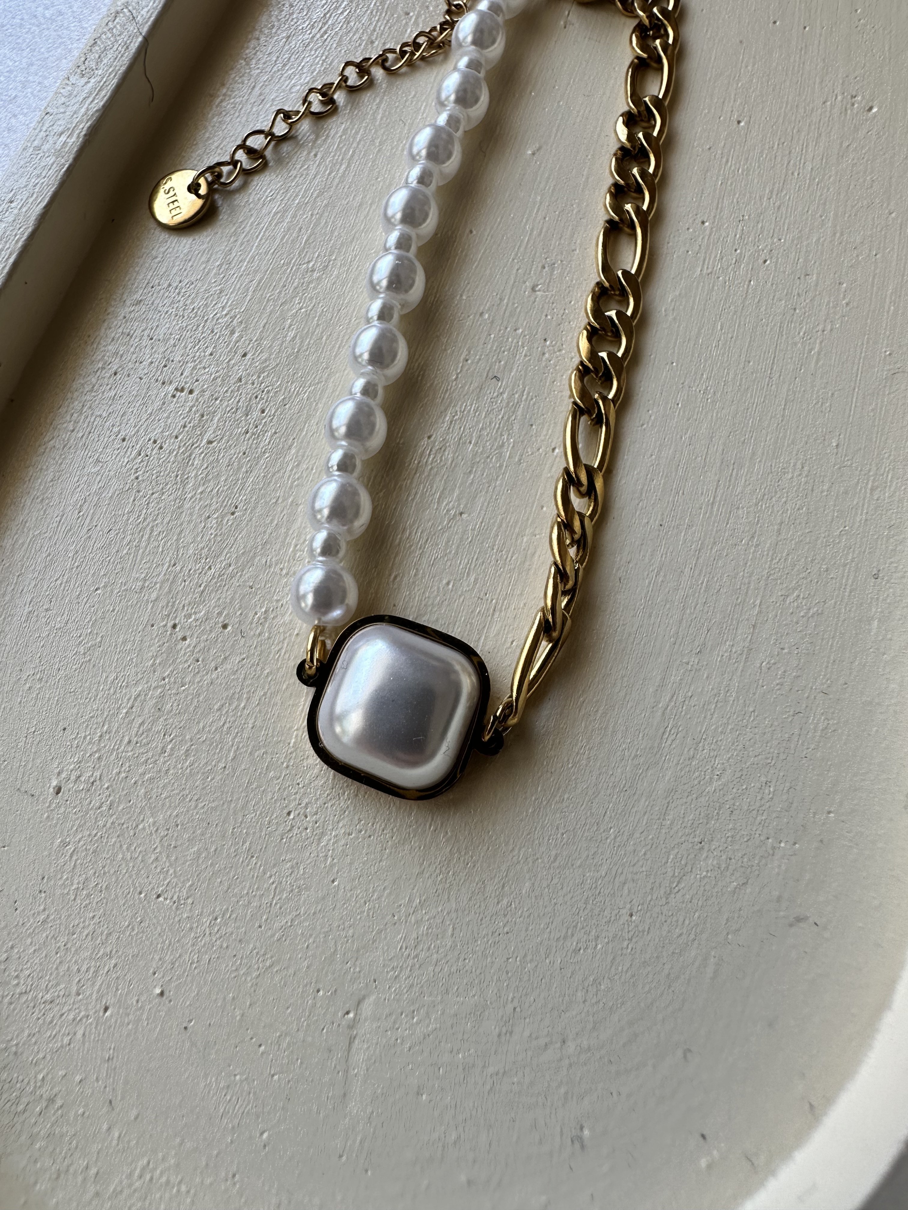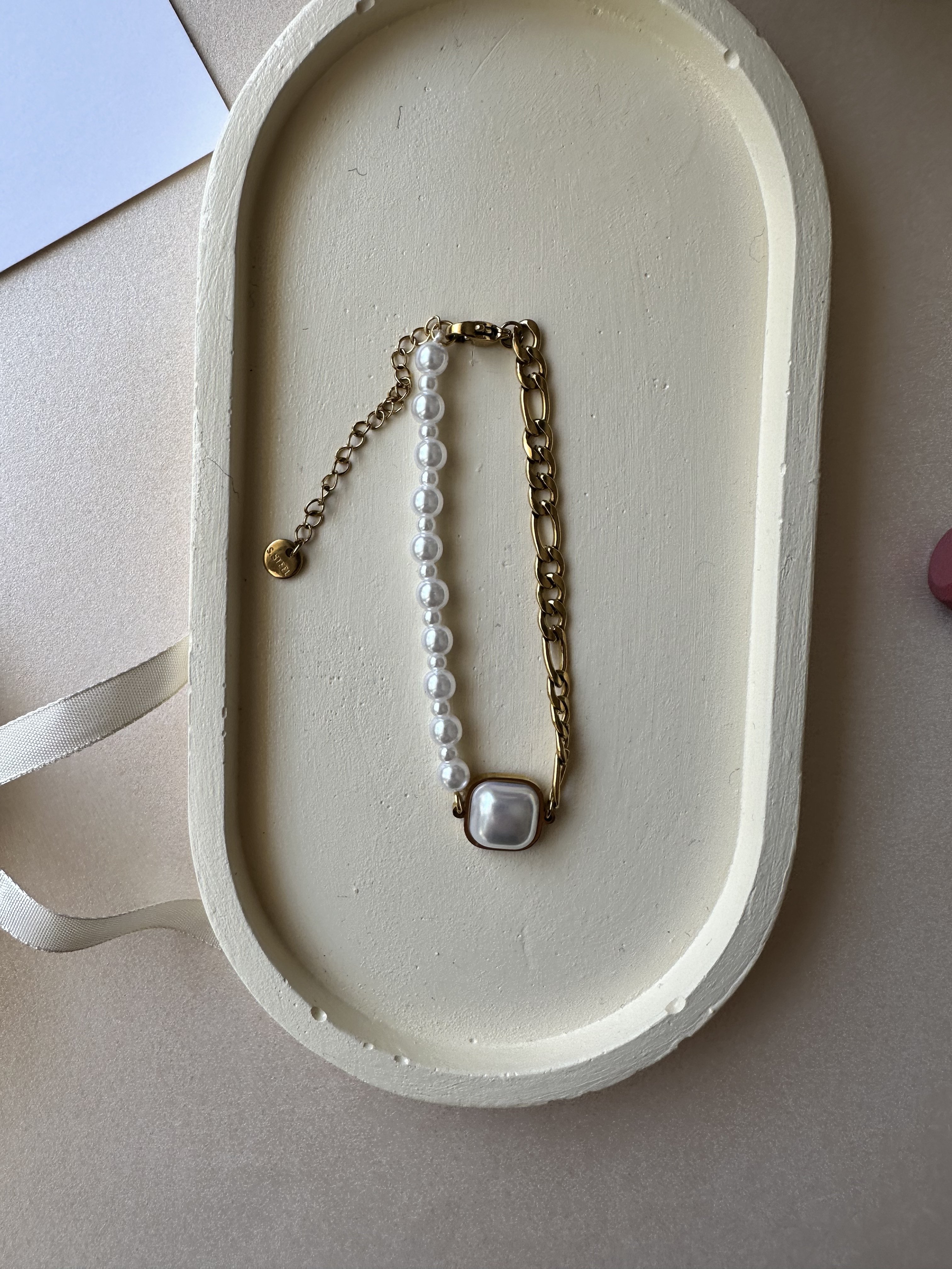 Yarısı İncili Yarısı Zincirli Tasarım Çelik Bileklik