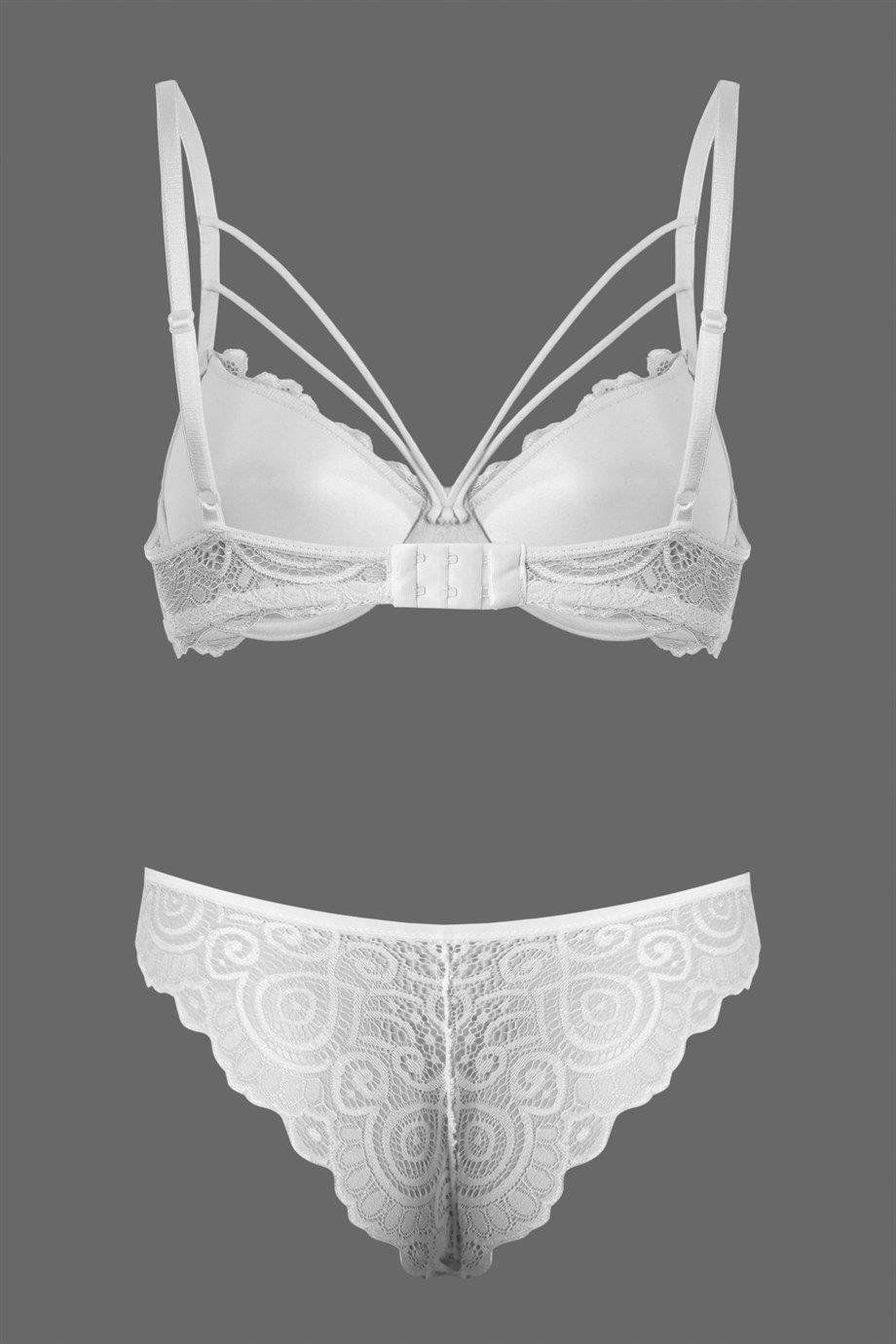 YNT Ekru Dantelli Çift İp Detaylı Şık Sütyen Takım 19000