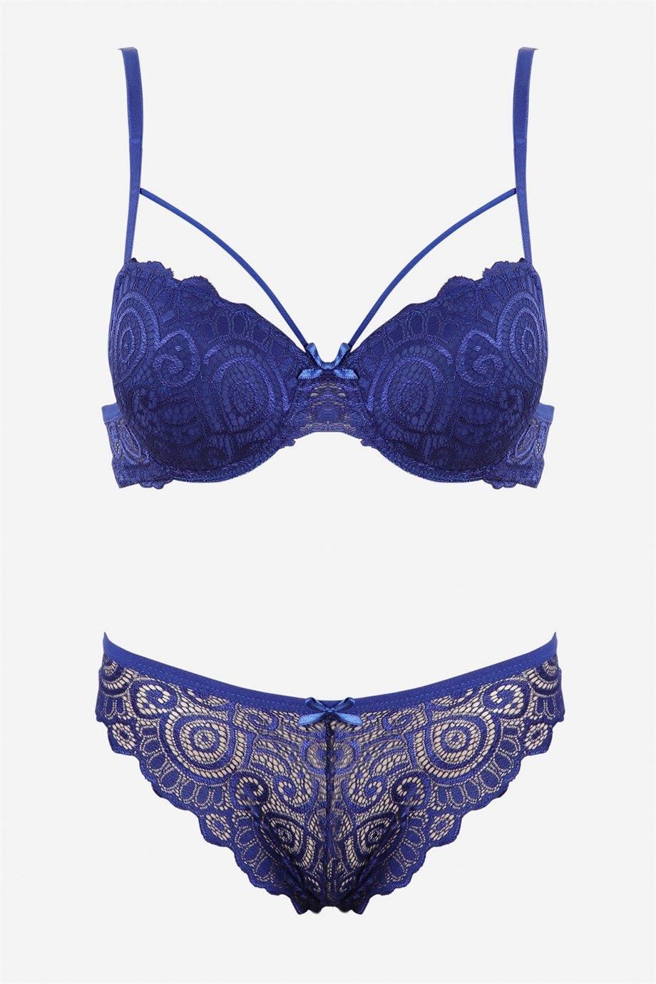 YNT Saks Dantelli Tek İp Detaylı Şık Sütyen Takım 19020